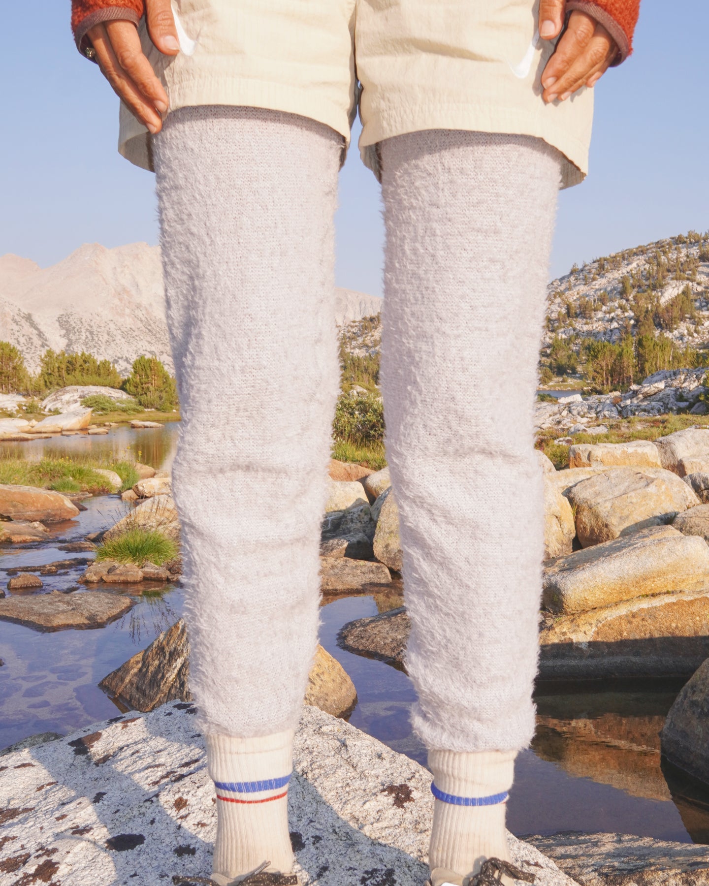 Active insulation legging for use within a modular layering system. Breathable knit for temperature regulation during movement with loft insulation for passive warmth at rest. High stretch and durable construction support unrestricted articulation and long-term performance, reducing the need for frequent layering adjustments.